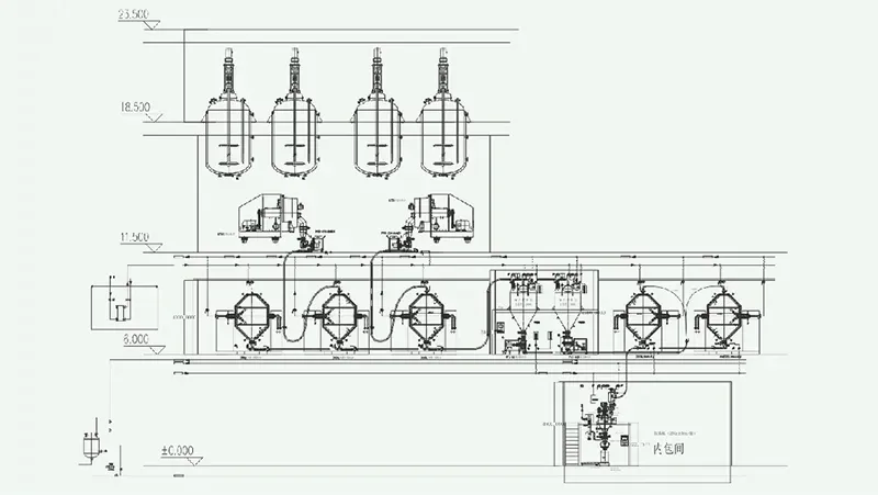 Granulation–drying–temporary storage–crushing–mixing–packaging production line